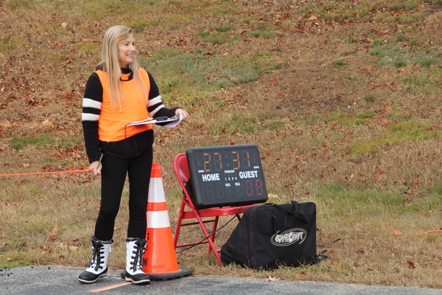 Lori Hegarty, retiring this month as the city’s recreation coordinator, times the Turkey Trot held on Nov 22.