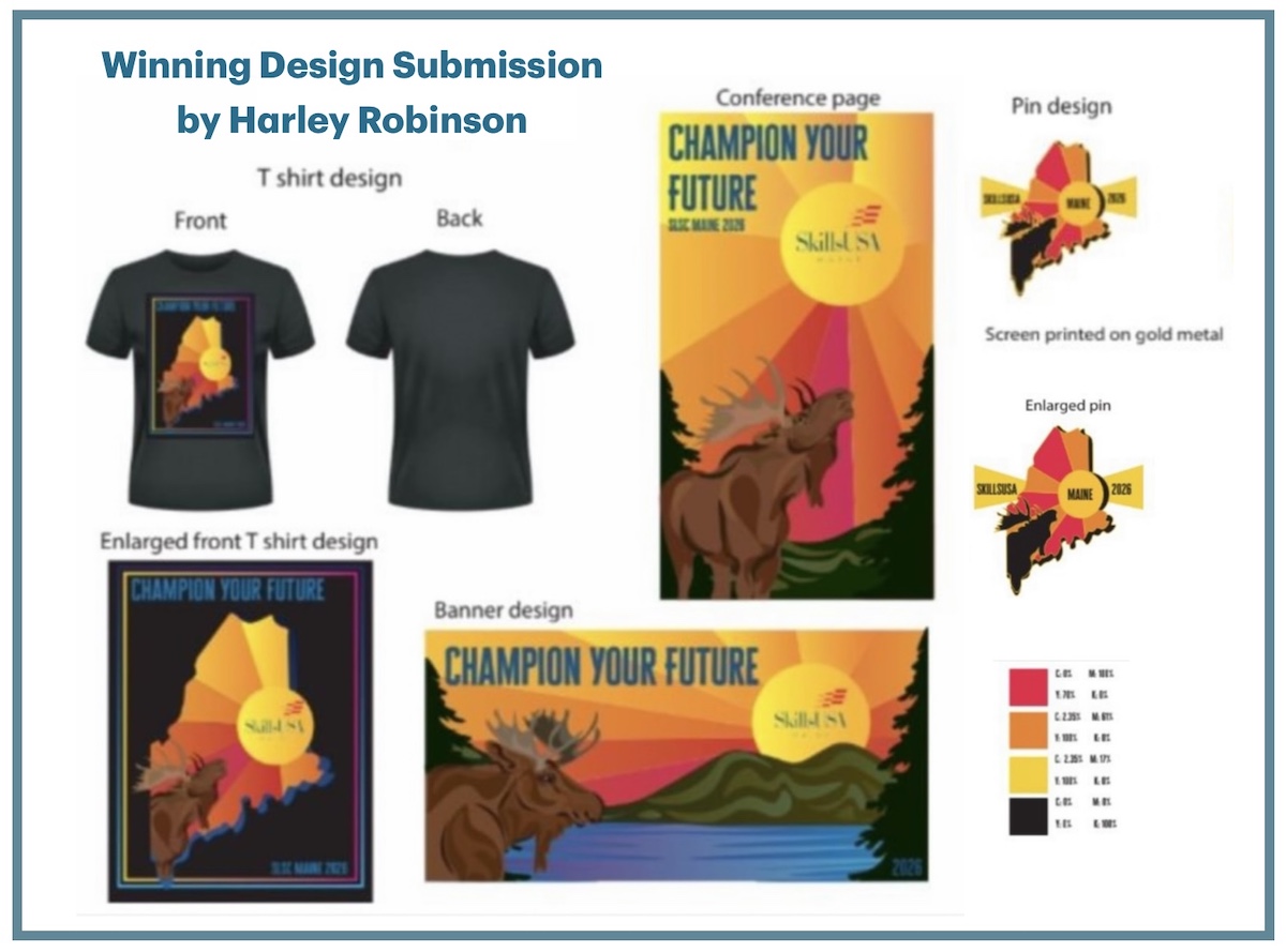 This design package, submitted by Sanford Regional Technical Center student Harley Robinson, is named the winner in a statewide competition to brand the SkillsUSA Maine Leadership & Skills Conference.